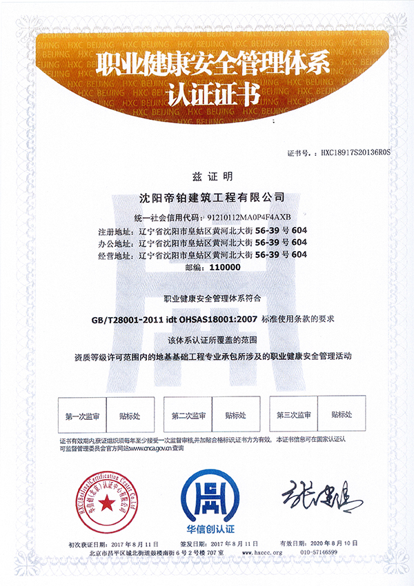 職業(yè)健康安全管理體系認(rèn)證證書