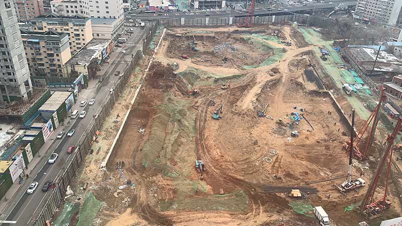 本站訊:由沈陽(yáng)帝鉑建筑工程有限公司承建的沈陽(yáng)華潤(rùn)皇姑置地廣場(chǎng)3期基坑支護(hù)及降水工程(即華潤(rùn)沈陽(yáng)皇姑萬象匯項(xiàng)目)已于2019年11月07日開始全面施工,預(yù)計(jì)2020年2月末完成基坑支護(hù)工作。本項(xiàng)目位于沈陽(yáng)市皇姑區(qū),東臨鴨綠江東街,南鄰崇山東路(北一環(huán),地下為地鐵10號(hào)線),北至錫山路,基坑周邊環(huán)境復(fù)雜,基坑安全等級(jí)為一級(jí)?;娱_挖面積為26000㎡,開挖深度為15.5m,合同額1300萬。本項(xiàng)目基坑支護(hù)及降水施工全部為冬季施工,難度非常大,目前已完成大部分支護(hù)樁施工,錨索和噴護(hù)工程正在有序展開。