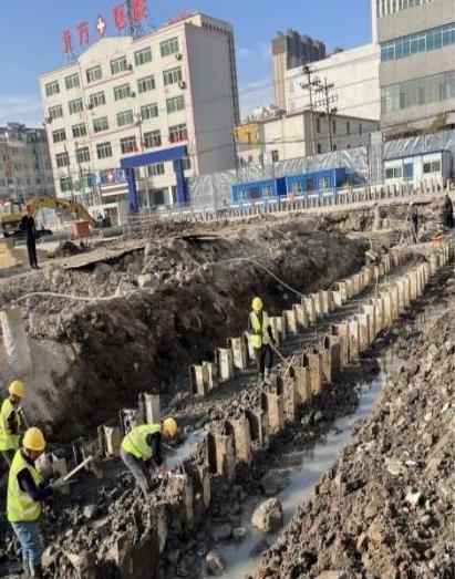 對(duì)于類似營(yíng)口地區(qū)的雜填、軟塑及流塑的粉質(zhì)黏土地層,結(jié)合我司多年的施工經(jīng)驗(yàn),現(xiàn)對(duì)本基坑支護(hù)及降水工程處理方案如下:基坑整體采用水泥土攪拌懸臂型鋼樁+鋼支撐+配筋墊層,北側(cè)緊鄰移動(dòng)機(jī)房處采用鋼筋混凝土樁+斜支撐+配筋墊層,自然放坡+土釘+坡面噴護(hù)的支護(hù)形式,地下水處理采用基坑內(nèi)泄壓和疏干,基坑周邊采用水泥土攪拌樁和高壓旋噴樁的止水方案。三、施工中攻克的重難點(diǎn)