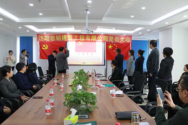 2019年01月10日上午09:30,沈陽帝鉑建筑工程有限公司在公司會議室召開黨員大會,參加會議的有:皇姑區(qū)委組織部副部長何長江同志、皇姑區(qū)基層黨建工作第二指導(dǎo)站站長徐穎同志、皇姑區(qū)非公促進會會長田永強同志、三臺子功能區(qū)黨工委副書記宋新同志、航院社區(qū)副書記周鵬飛同志、區(qū)工商聯(lián)秘書長姚成順同志、非公黨建促進會會員等各位領(lǐng)導(dǎo),會上黨委批準成立沈陽帝鉑建筑工程有限公司黨支部,并投票選舉支部書記由孫常學(xué)當選。會上,區(qū)組織部何部長做重要講話,對沈陽帝鉑建筑工程有限公司黨支部成立表示祝賀同時強調(diào)帝鉑黨支部一定做好,做優(yōu),做強。