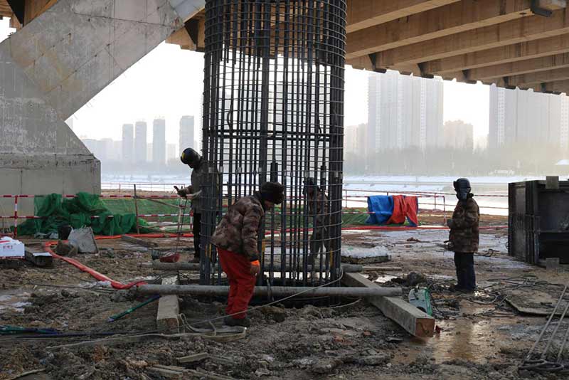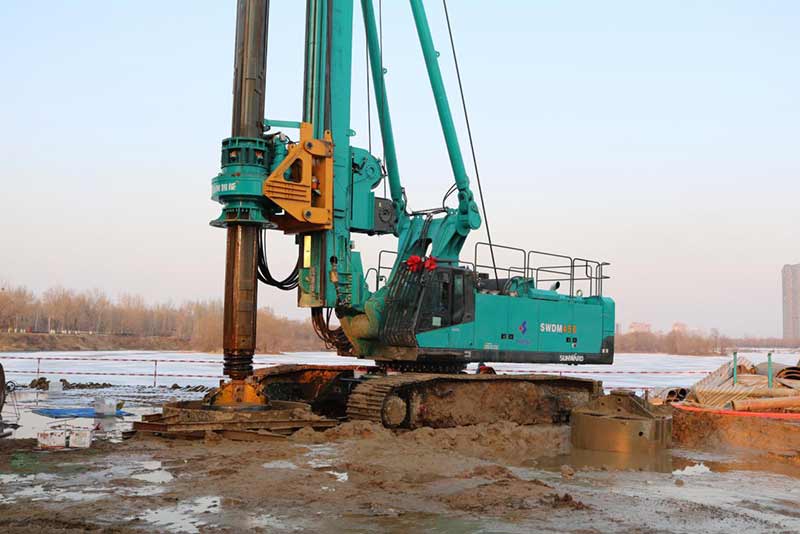 長青橋東西兩側(cè)新建橋梁下方采用長螺旋鉆孔灌注樁作為臨時支架基礎(chǔ),樁徑為800mm,樁長為10m和15m。